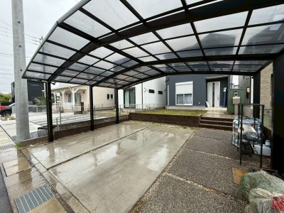 K様邸にて、玄関まわりと駐車場の外構工事を行いました!新築に合わせた施工で、建物の雰囲気に合ったスッキリとしたデザインに仕上げました。機能性と見た目のバランスを考えながら、ご家族が毎日快適に使えるような外構を目指しました。