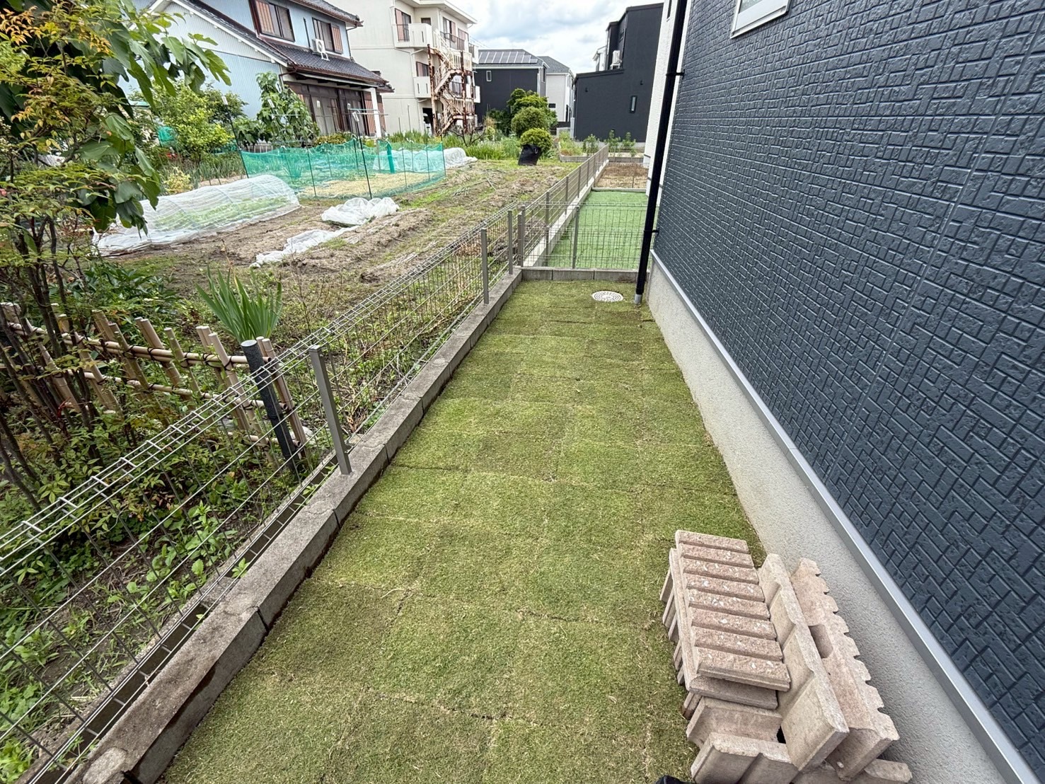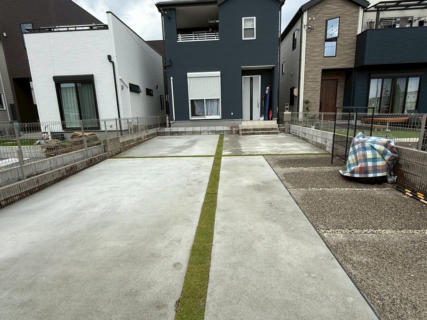 外周や隙間には天然芝を敷き、お散歩も楽しめる空間に。見た目も機能性も両立できました。