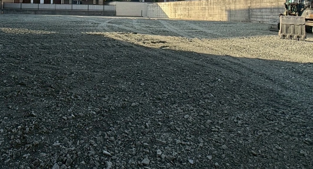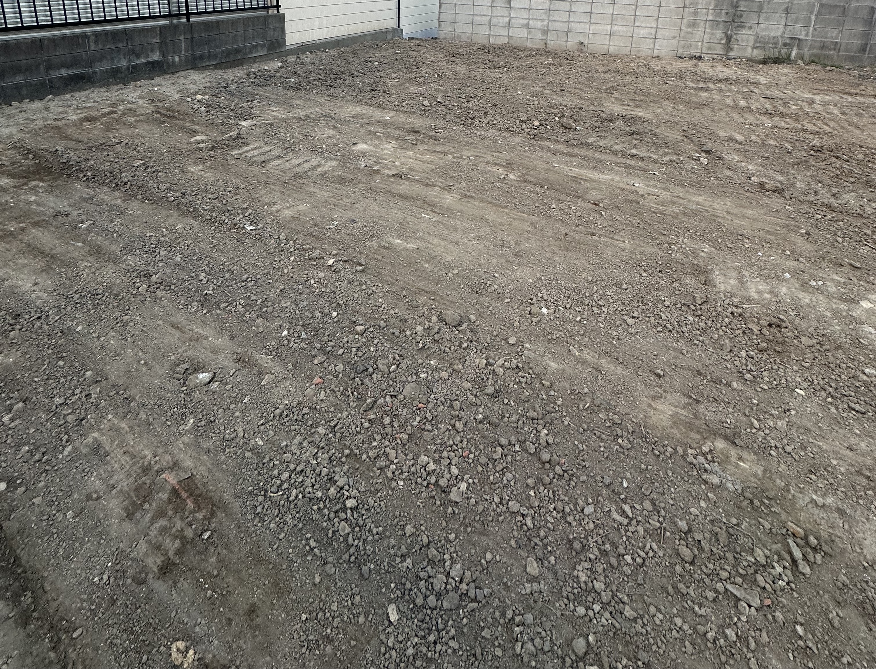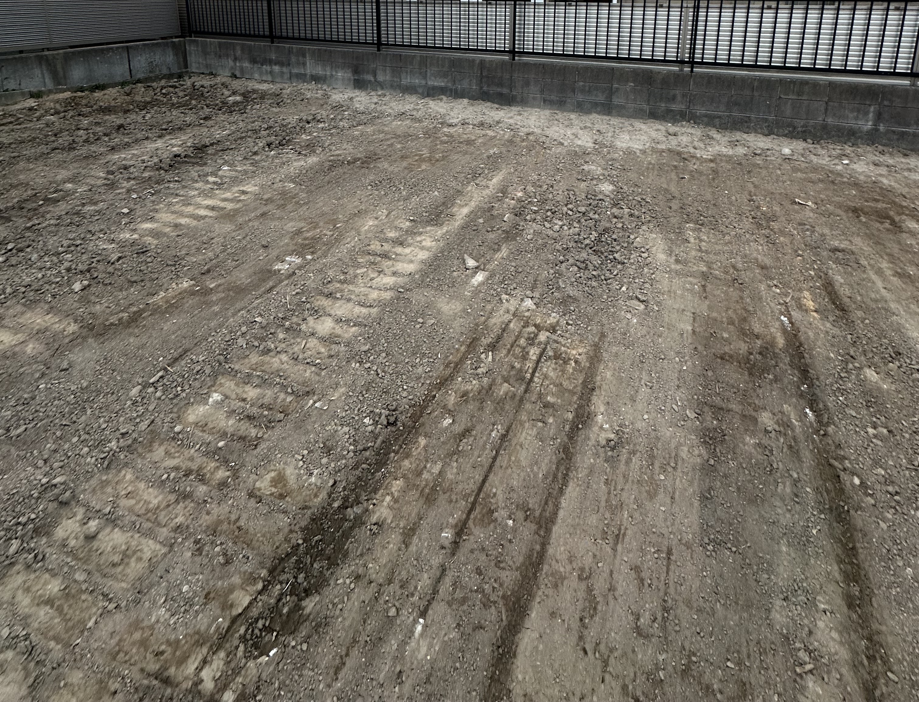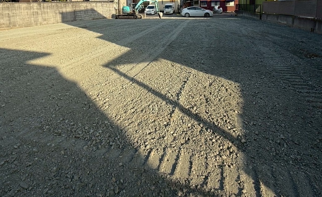 今回の現場は、もともとお家が2棟建っていた土地。解体後に見えてきた地盤は、粘土質の土でした。